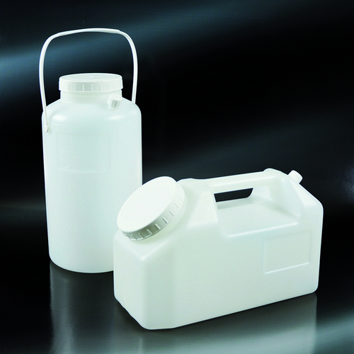 Contenedores graduados para la recolección de orina de 24 horas, con tapón de rosca y tapón para recolección de muestras.