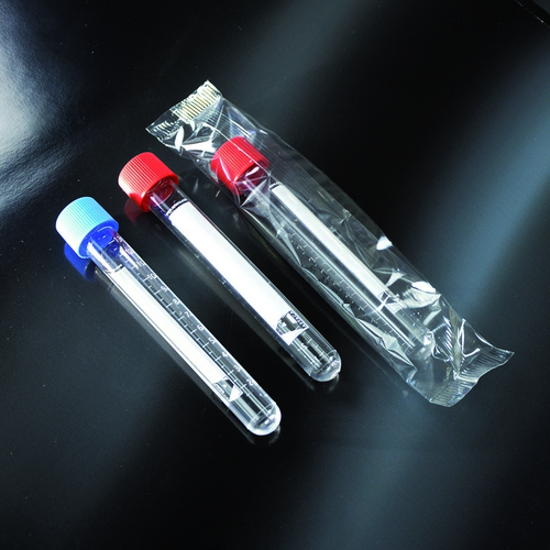 De poliestireno, con superficie de escritura y graduaciónserigrafiada. El tapón de rosca garantiza un cierre hermético. Vol. 15 ml Ø 16 x 120 mm